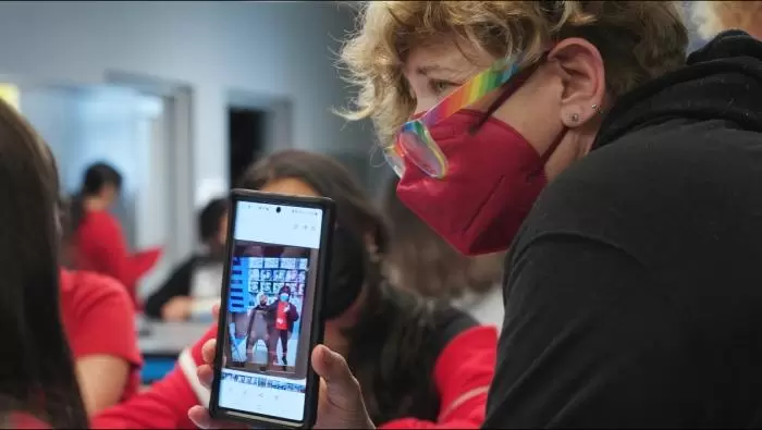 Jose Gonzalez, Verizon Innovative Learning Schools coach at Davis Middle School in Compton, California, uses the Visceral Science app on Verizon Innovative Learning HQ to send his students into outer space.