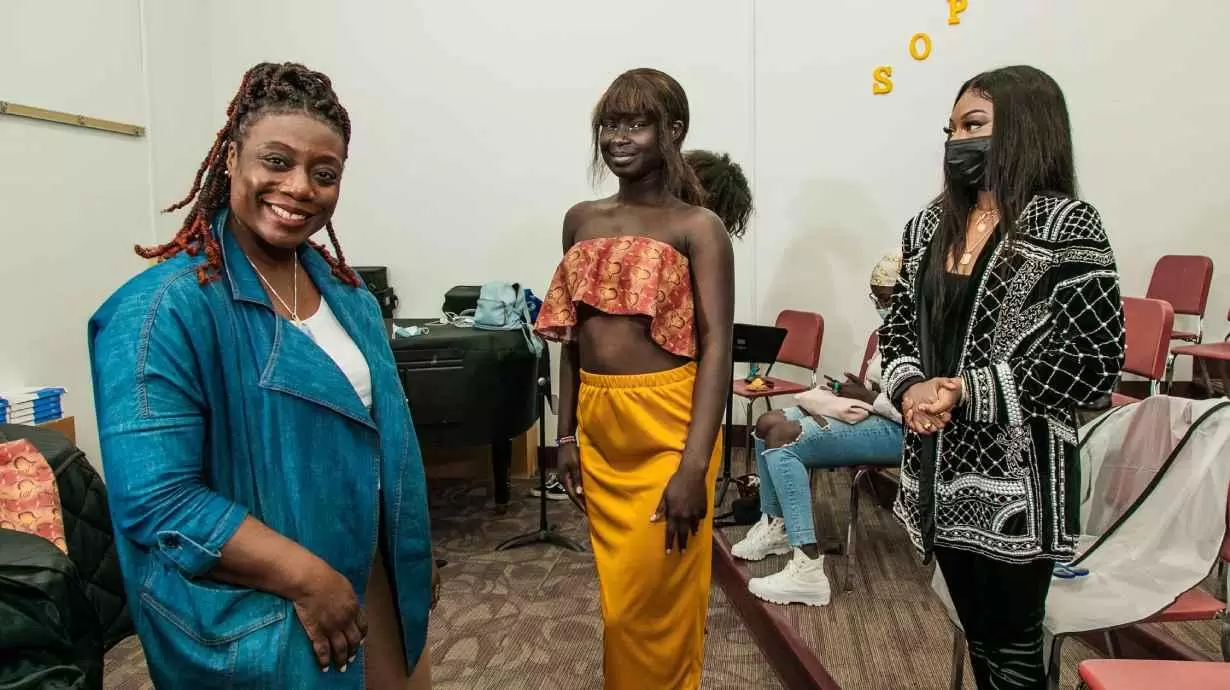 It’s all hands on deck as Freeman-Parker helps students at her alma mater with their senior fashion show. Credit: Tania Fernandez