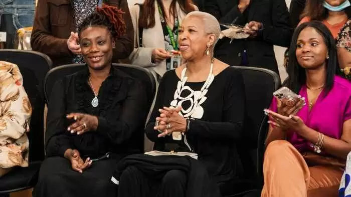 Freeman-Parker is passionate about encouraging the next-generation of fashion leaders; here, she joins others to cheer on the designers at a Norfolk State University fashion show. Credit: Tania Fernandez
