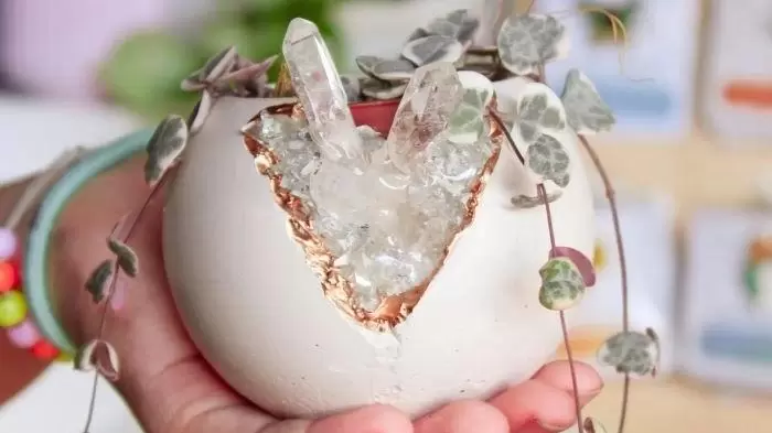 Otro aspecto único de las creaciones de Pita es que muchos de sus contenedores son reciclados. Pita coge trozos de vidrio, fragmentos de cerámica, incluso cristales y otros materiales que terminarían en la basura, y los utiliza para crear algo nuevo.