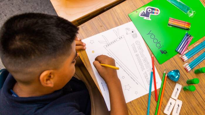 In addition to digital resources, Verizon Innovative Learning students received physical resources to support them during remote learning. The program partnered with school supply company Yoobi to provide essential supplies like crayons, pencils, glue sticks and folders. Holland Middle School (Houston, Texas) eighth-grade math teacher Breana Chatman already sees her students making the most of the tools as she works to keep them engaged in lessons on the Pythagorean Theorem. “Yoobi supplies allow them to color their notes and make them something they enjoy writing as they use their devices,” she says.