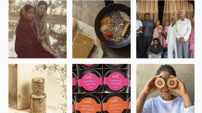 A quick scroll through Diaspora Co.’s Instagram, and you’ll find summer reading lists curated by Sana to encourage deeper dives into issues like equity, race, power and entrepreneurism. You’ll see live cooking demonstrations by celebrity chefs of color who demonstrate how to use Diaspora Co. spices in compelling ways. You’ll see photos of their farmer partners with raw ingredients amid the lush Indian landscape, captured by Sana on her many trips to the farms.