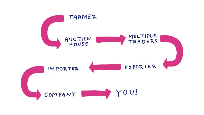 Typically, spices trade hands upward of 10 times before they reach their final destination. From farmer to auction house, multiple traders, exporter, importer, spice company, distribution center, grocery store and finally to you.