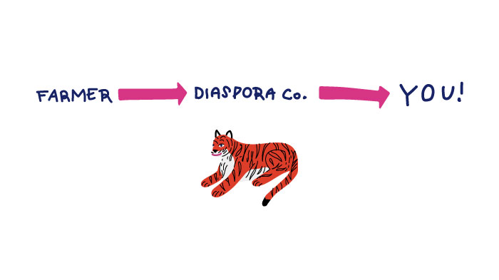 Diaspora Co. bypasses the middlemen, providing fresher ingredients and equitable pay for farmers. Graphic by Diaspora Co. designer Aleesha Nandhra