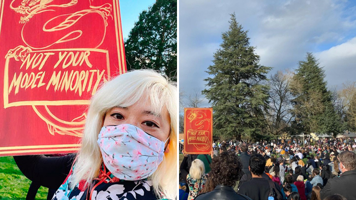 Some of Tse’s current VR art on social media features a protest sign she made: “I am not your model minority.”