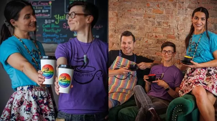 Soon after Leann Cantrell and Becca Ferstle were married, Cantrell was deployed for active duty in the military. Despite the distance between them, the newlyweds found comfort in planning for their future. When Cantrell mentioned a dream of opening a coffee shop, the idea quickly ignited. The duo sketched out the concept for their cafe, which would also support LGBTQ+ folks in Toledo, Ohio.