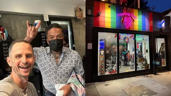 Ismael De Luna (right), owner and operator of Healing Cuts SF in San Francisco, poses with customer Richard Harem (left). “His contagious personality and occasional bursts into song make your time in the chair so much more than just a trim—it's a mood booster you didn't know you needed,” Harem says. Photo credit: Richard Harem and Ismael De Luna