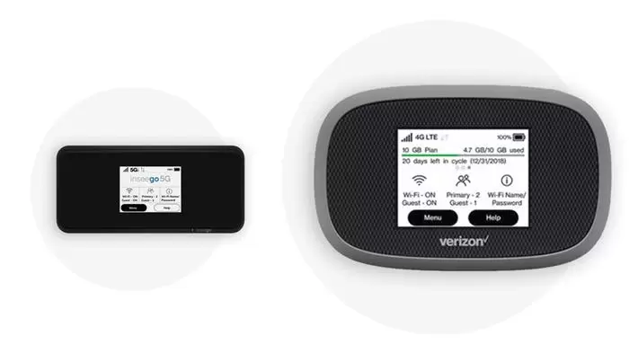 The Verizon Jetpack MiFi® 8800L by Inseego and the Inseego MiFi M2100 5G UW are Verizon’s global-ready high-speed mobile hotspot devices. They’re compatible with global data services in over 200 countries. They also both have universal chargers to make charging easy, can last up 24 hours on one charge and power mobile devices up to 50 feet away.