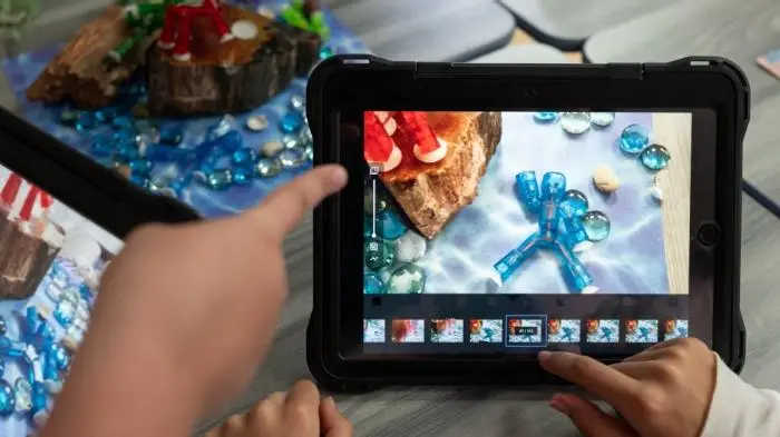 Students find the technology both easy-to-use and engaging. “After I take all the pictures, I go to the app where you can edit and add effects,” says fifth grader Gabriela. “I feel like I’m learning when I use it. You’re expanding your brain to learn about editing photography and video together.” The lesson also teaches physics (understanding motion and gravity), engineering (designing sets and props) and math (measuring time and frame rates).