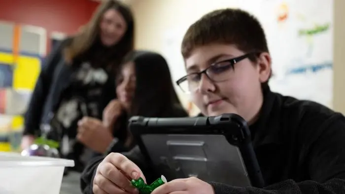 Coach Thompson reports that the Stop-Motion Animation lesson from Verizon Innovative Learning HQ is a hit with students. Here, Leo, a seventh grader, sets up his first shot. Photo credit: Nicole Bissey