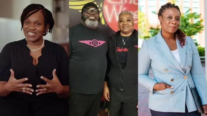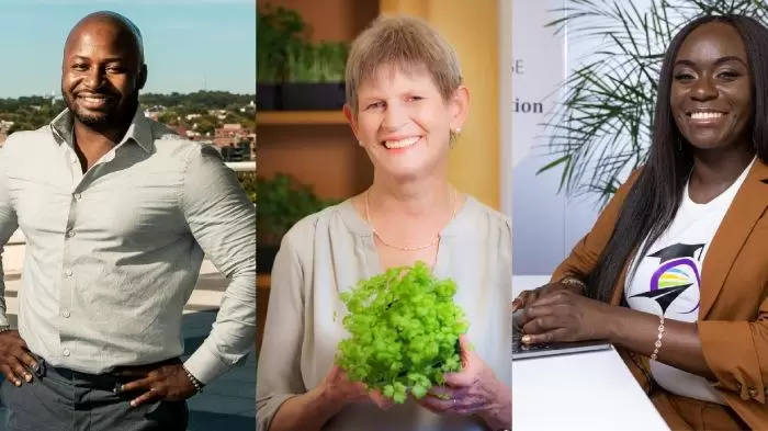 Left to right: Jevon Wooden, CEO of Live Not Loathe; Margo Clayson, CEO of The Mighty Microgreen; and Samantha Sinclair, CEO of Pathway to Purpose. Credit: Tania Fernandez, Margo Clayson, and Michael Le Brecht ii.