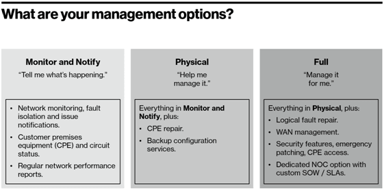 - Management services for the timely delivery and successful activation of the network with Verizon.