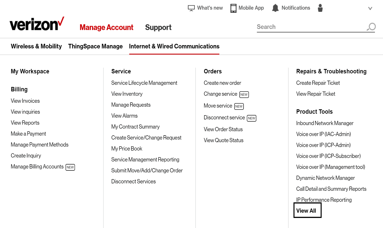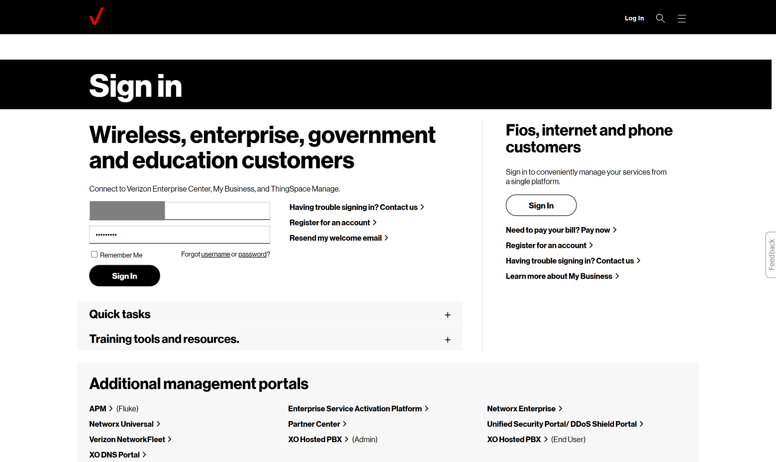 Verizon Enterprise Center portal users can use Quick Tasks for repairs, billing, and some wireless functions or sign-in to get access to key business functions delivering near real-time information to you.