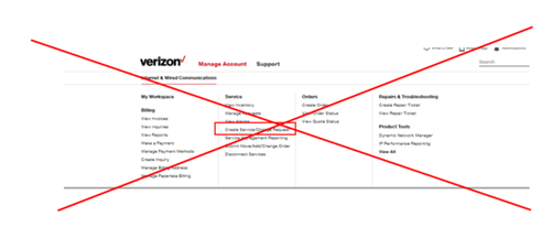 (800-525-0481 Option #3) or Verizon Enterprise Center portal