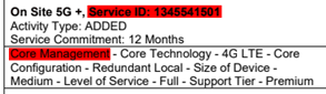 It is the Service ID mentioned under On Site 5G, detailed as “Core Management” as per here below: