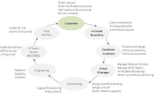 Your Order Manager tracks the progression of the order and communicates updates as needed in the form of periodic e-mails and/follow up calls regarding key milestones regarding the implementation and activation. The Order Manager will work all aspects of the order directly with you and will gather any additional information needed.