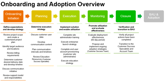 b. Transitioning all required responsibilities to the Account Team, Customer Success Team, and Customer Webex Site Administrator.