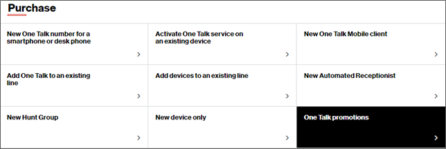 This document contains the initial steps to get you started with One Talk services and features. Information on all One Talk setup, features, and solution management can be found on our One Talk Support page.