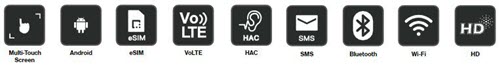 Android Operating System and a built-in eSIM card — communications go over the Verizon Wireless 4G / VoLTE Network.
