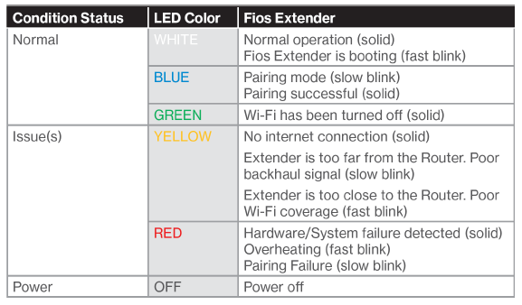 Wi-Fi Extenders help extend the reach of the Wi-Fi signal in locations of your home where the Wi-Fi signal is weak or no signal is available. To get the most out of your Wi-Fi Extender, when connected wirelessly to the router, place it between your Fios Router and the weak Wi-Fi area. Reference the table below to ensure you have placed the Extender in an optimal location.